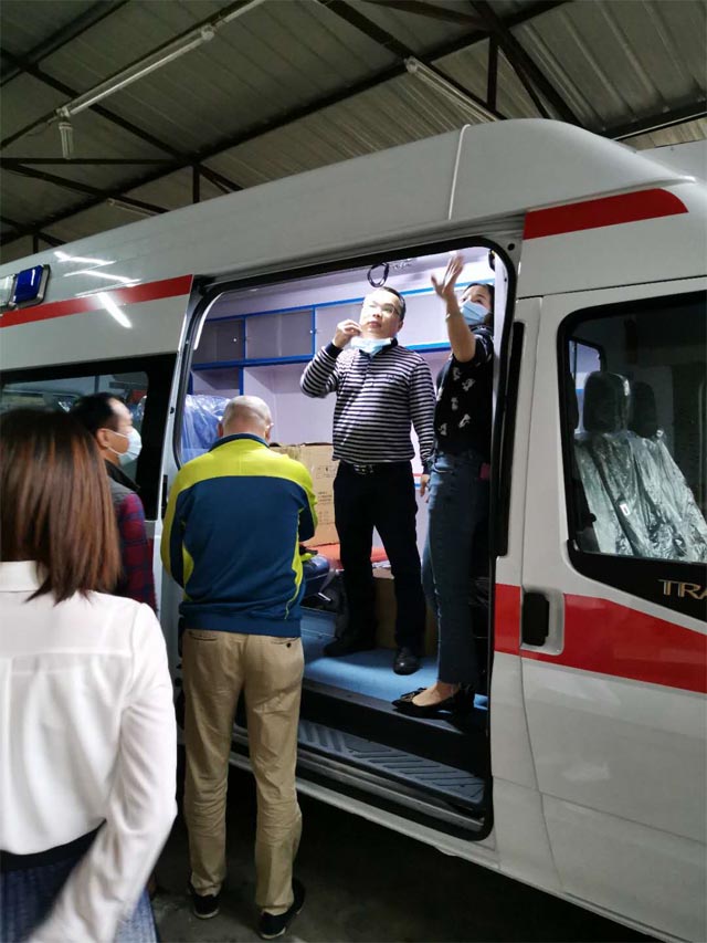 顯浩醫(yī)療救護(hù)車(chē)廠家委派專業(yè)人員對(duì)相關(guān)醫(yī)務(wù)人員進(jìn)行整車(chē)培訓(xùn),客戶對(duì)我們的服務(wù)表示滿意,相信我們以后會(huì)有更好的合作。救護(hù)車(chē)的順利交付,助力病人轉(zhuǎn)運(yùn)、醫(yī)療急救等工作。醫(yī)院把救護(hù)車(chē)車(chē)?yán)煤?,真正發(fā)揮醫(yī)療救護(hù)的作用。讓廣大人民群眾受益。全縣應(yīng)急救護(hù)能進(jìn)一步增強(qiáng)。救護(hù)車(chē)救護(hù)車(chē)外觀車(chē)輛,包括識(shí)別,醫(yī)療室系統(tǒng),電源系統(tǒng),與呼吸機(jī)可任選地,化驗(yàn)機(jī)器,ECG等設(shè)備,汽車(chē)內(nèi)部是設(shè)置輕便鋁合金擔(dān)架車(chē)、氧氣瓶、中隔墻醫(yī)藥柜等應(yīng)急管理醫(yī)療服務(wù)器械,為鄉(xiāng)鎮(zhèn)急救信息中心對(duì)危急重癥病人可以進(jìn)行有效救護(hù)、監(jiān)護(hù)和轉(zhuǎn)運(yùn)系統(tǒng)提供了周全保障。
