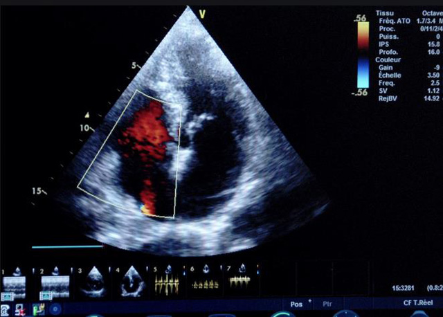 (三)檢測(cè)節(jié)段性室壁運(yùn)動(dòng)異常,研究冠心病患者左心室功能和分析局部室壁運(yùn)動(dòng)過(guò)程中。測(cè)量每一節(jié)段室壁的運(yùn)動(dòng)量,運(yùn)動(dòng)正常的節(jié)段彩帶色彩均勻?qū)哟喂庹?。運(yùn)動(dòng)減弱的節(jié)段,厚度薄層次不全。心內(nèi)膜位移幅度和速度均減低。心內(nèi)膜位移幅度和速度甚低或難以測(cè)得。正常的多層彩帶消失,呈現(xiàn)紅色色帶,心內(nèi)膜位移呈負(fù)向,幅度和速度亦減低。急性心肌梗死的患者中可用于識(shí)別存活心肌抑或壞死心肌。多巴酚丁胺負(fù)荷試驗(yàn)存活心肌的心內(nèi)膜位移幅度增高,停藥后即消失,而壞死心肌則無(wú)上述表現(xiàn)。實(shí)時(shí)檢查冠心病的節(jié)段性室壁運(yùn)動(dòng)異常,有時(shí)候通過(guò)發(fā)現(xiàn)局部心肌運(yùn)動(dòng)的時(shí)相異常,對(duì)于心臟傳導(dǎo)障礙的診斷也可能有幫助。