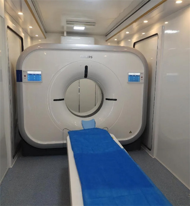 提升醫(yī)療服務(wù)質(zhì)量,醫(yī)院改善體檢就醫(yī)體驗(yàn)。移動(dòng)CT體檢車投入使用,采用了移動(dòng)CT高端設(shè)備,精準(zhǔn)體檢檢查,移動(dòng)服務(wù)。這個(gè)相當(dāng)是個(gè)移動(dòng)的CT檢查室。可以開到需要的地方進(jìn)行CT檢查,大大緩解醫(yī)院壓力,特別是可以解決檢查人數(shù)多,等待時(shí)間長(zhǎng)的問題。移動(dòng)機(jī)動(dòng)性可以深入到各個(gè)地方,開展義診,科普,檢查等醫(yī)療檢查服務(wù)。讓大家在附近就可以享受到高端的CT檢查。