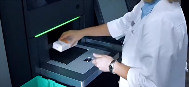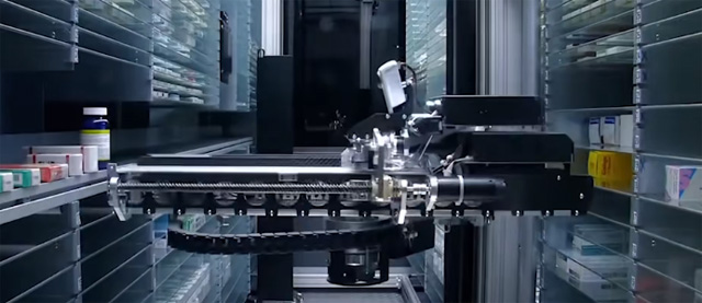 發(fā)藥機(jī)最快可以8秒完成配藥。高峰時(shí)候可以2秒發(fā)出一盒藥。一張?zhí)幏揭?盒藥品計(jì)算只需要8-12秒就可以配齊。大大的提高了發(fā)藥效率。發(fā)藥機(jī)還有自動(dòng)鎖定功能,還可自動(dòng)識(shí)別過期的藥品。過期藥品將不予發(fā)放,當(dāng)缺少部分藥品時(shí)候,后臺(tái)將藥品傳輸?shù)胶笈_(tái)藥劑師人工添加好后再傳輸?shù)角芭_(tái)。很多人講這個(gè)不就是一個(gè)機(jī)械臂嗎?可以進(jìn)行掃描取貨。看視乎不難,其實(shí)還是有很高的技術(shù)含量的。