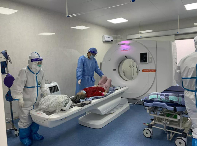 醫(yī)院發(fā)熱門診就診,長方體箱子中進(jìn)行CT胸部檢查。這個就是方艙CT,在疫情防控期間發(fā)揮了重要作用。嚴(yán)格的場地布局,設(shè)備組裝,質(zhì)量控制檢測,放射防護(hù)檢測,就可以馬上投入使用。方艙CT獨(dú)立在醫(yī)院大樓外面,主要是配套發(fā)熱門診使用。如果有疑似病人就通過專用通道進(jìn)入方艙CT檢查。雙向單通道沒有與外界聯(lián)系。CT檢查準(zhǔn)時高效,確保了檢查的強(qiáng)隔離沒有任何接觸,可以保障檢測人員跟病人沒有感染的風(fēng)險。采用閉環(huán)管理,檢查人員的口罩、隔離衣服、手套都是全方位的消毒。CT掃描檢查好后的圖像質(zhì)量。上傳到數(shù)據(jù)系統(tǒng)然后查看圖像。各個科室的醫(yī)生也可以通過網(wǎng)絡(luò)看片。方便高效快捷。方艙CT的啟用為患者提供精準(zhǔn)的影像診斷,為醫(yī)生提供快捷的影像報告、準(zhǔn)確的參考依據(jù),疫情防控提供有力的數(shù)據(jù)支持。