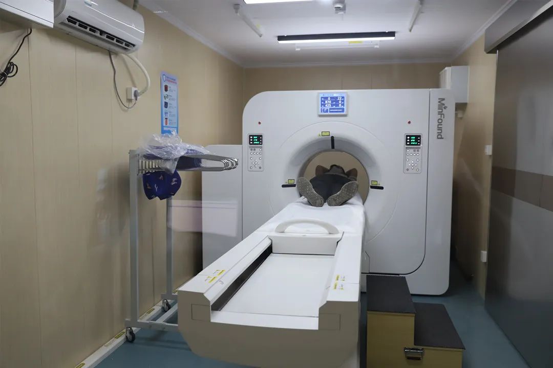 每位陽性患者都需要CT檢查,肺CT檢查的結(jié)果治愈出院前的一項(xiàng)重要指標(biāo),在疫情中有不可取代的作用。幫助醫(yī)生迅速判斷患者有無肺部炎癥以及其范圍和程度等。防范院感風(fēng)險(xiǎn)、提高疫情防控方面發(fā)揮重要作用。移動(dòng)CT車發(fā)揮了重要的作用。移動(dòng)CT車把CT檢查設(shè)備、獨(dú)立操作室、獨(dú)立掃描室、輻射防護(hù)、設(shè)備可以全隔室操作,保證疑似和發(fā)熱病人的檢查,移動(dòng)CT車相對(duì)于傳統(tǒng)的CT,其消毒時(shí)間也更短,提高了疾病的診治效率。又要保證避免交叉感染和防護(hù)工作,醫(yī)患全程無接觸,避免交叉感染。通風(fēng)系統(tǒng)等集中到一輛車上,空間雖然小,影像操作室與檢查室之間密閉隔離,檢查室和操作室配備了紫外線消毒裝置,提升了基層服務(wù)疾病篩查能力,將更好地為患者提供更快速及優(yōu)質(zhì)的診療服務(wù)。移動(dòng)CT車可以做到“一檢查、一消毒”,有效避免醫(yī)患之間交叉感染的情況發(fā)生。但是和醫(yī)院的CT室一樣發(fā)揮檢查作用。