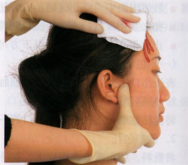 (1)頭頂出血用手指壓迫傷口同側(cè)耳前方顳淺動脈搏動點(diǎn)。